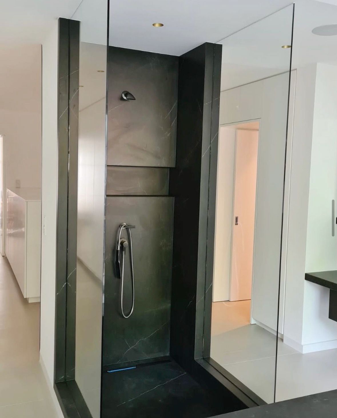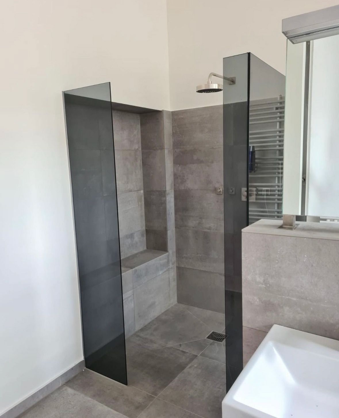 Feststehende Seitenwände für Duschen, Glastür als Schiebetür, Glasplatte nach Maß oder Glastrennwand aus der Glaserei Bernd Rembde.